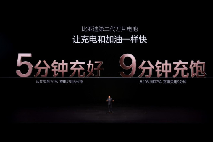 “莫得东谈主比咱们比亚迪更懂电板。” 在3月5日的比亚迪“闪充中国 改革世界”发布会上,比亚迪集团董事长兼总裁王传福发布了比亚迪迪二代刀片电板及闪充技巧,并文告了一个极具颠覆性的充电速率: 5分钟从10%充到70%; 9分钟从10%充到97%; 零下30度,充电时刻也只加多3分钟。 比亚迪将其详细为——5分钟充好,9分钟充饱,零下30度只多3分钟。 这意味着新能源汽车的充电速率纪录再一次被比亚迪刷新,困扰纯电汽车普及的“充电慢”“低温充电难”等问题被极大缓解。 1500kW闪充,比亚迪是奈何杀青的?